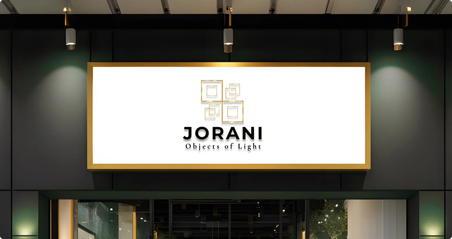 The identity system was created to work seamlessly across retail signage, packaging, advertising, and product branding. From storefront signage and shopping bags to promotional posters and brand materials, the Jorani logo maintains a consistent and upscale presence. This cohesive brand identity helps position Jorani as a contemporary lighting brand focused on design, quality, and visual sophistication.